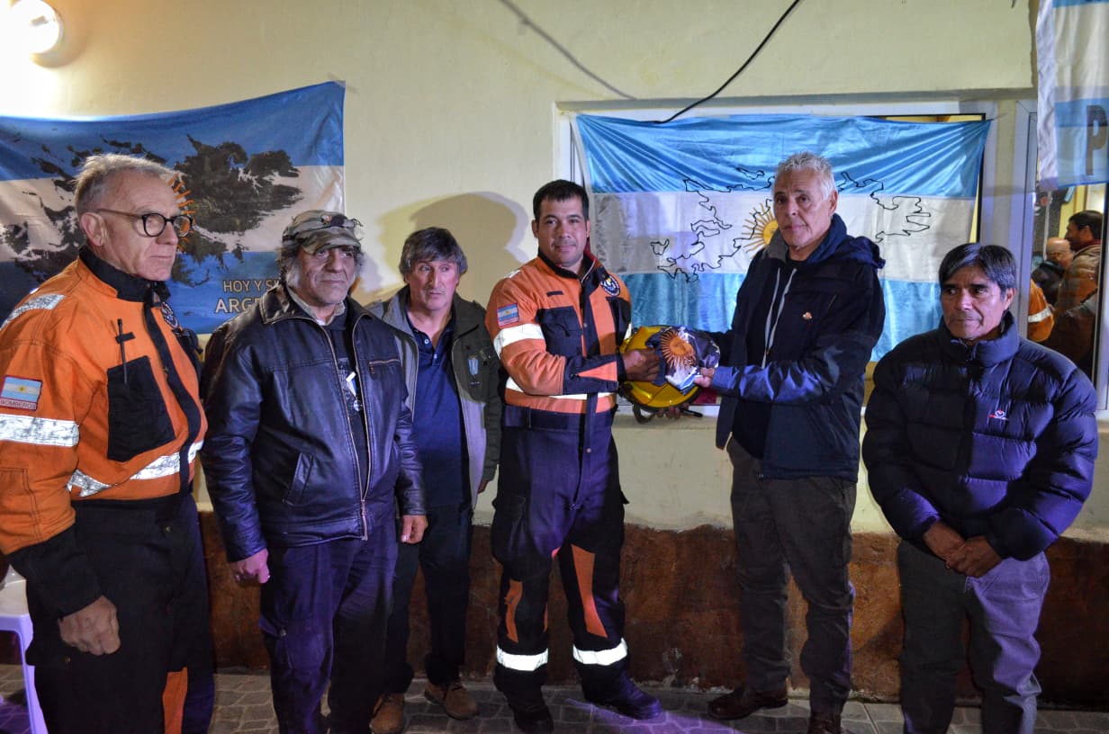 Como cierre del acto, se llevó a cabo un intercambio simbólico entre los Bomberos Voluntarios y los veteranos: los excombatientes firmaron un casco de bomberos que pasará a ocupar un lugar de honor en el cuartel local, e hicieron entrega de una bandera argentina con las Islas Malvinas, fortaleciendo los lazos de respeto y gratitud entre ambas instituciones.