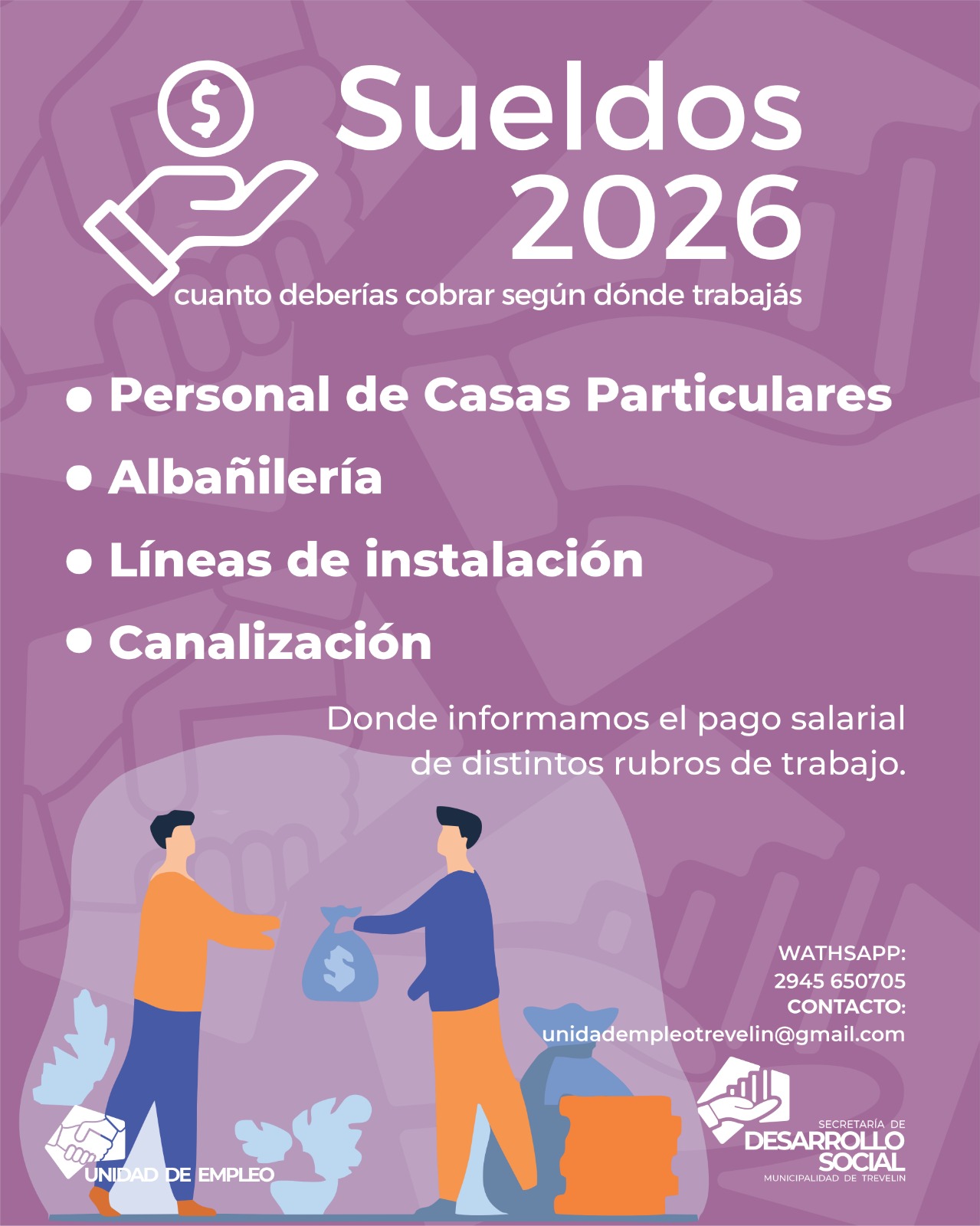 Te informamos el pago salarial de distintos rubros de trabajo.